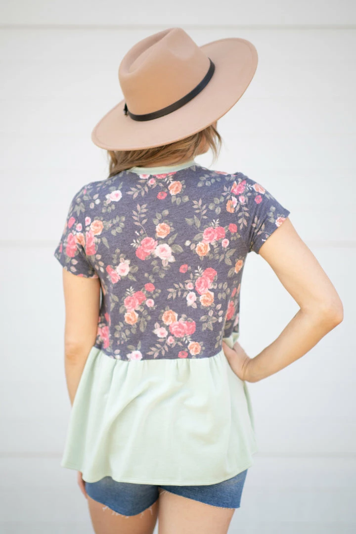 - Print: Solid with Floral Sleeves