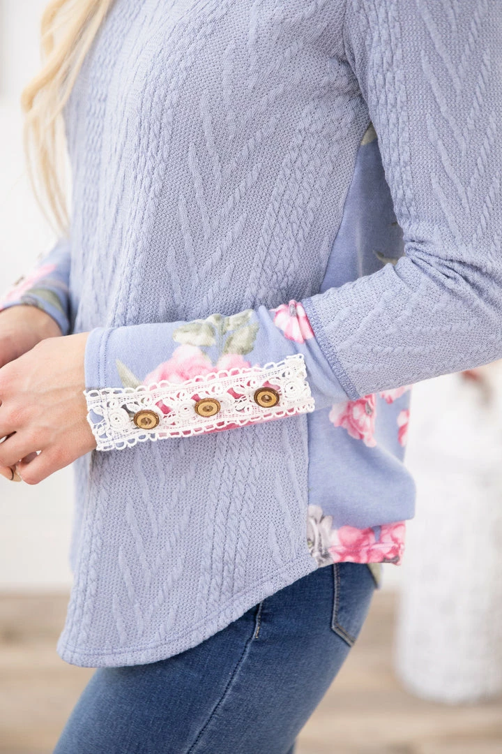 - Colors: Dusty Blue, Olive and Mauve