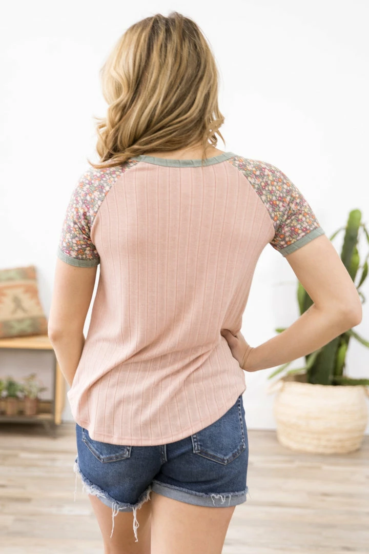 - Print: Solid with Floral Print Sleeves