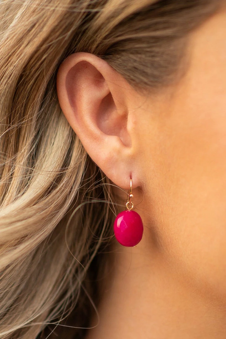 Essence NY INC Fuchsia Natural Stone Hook Earring Accessories