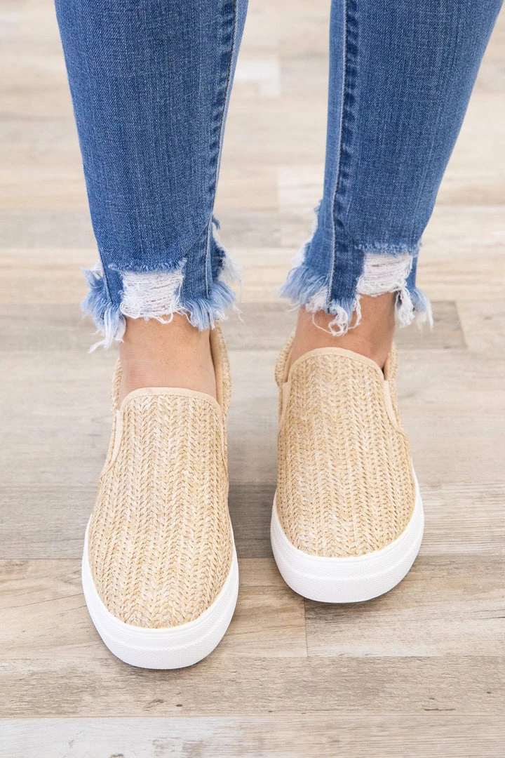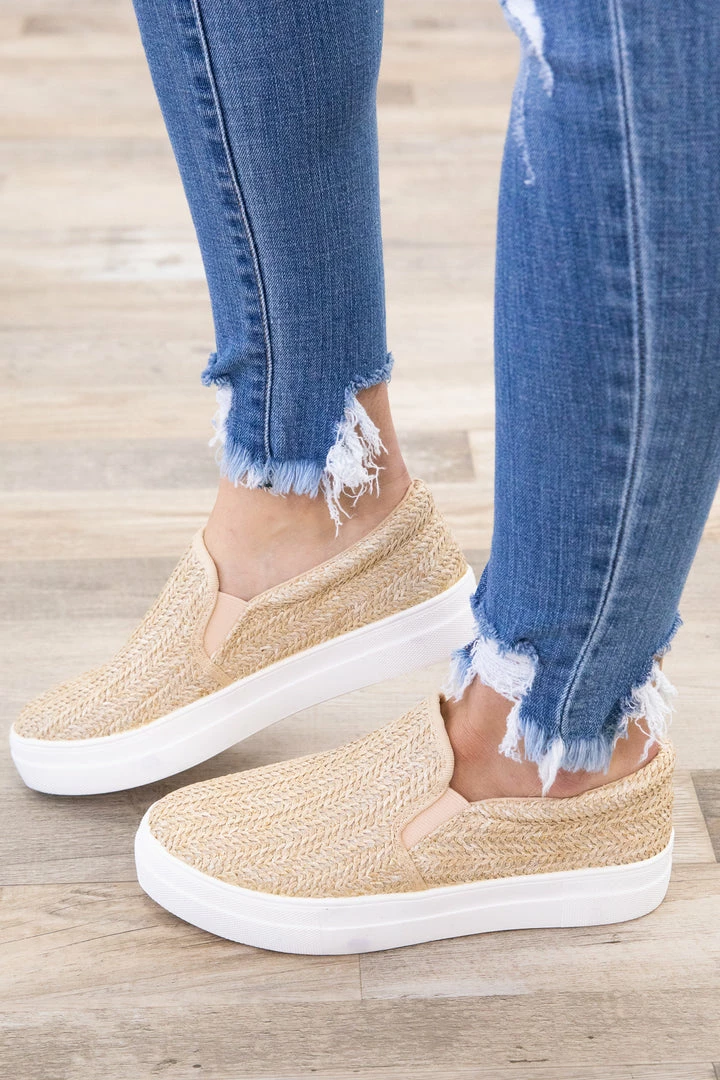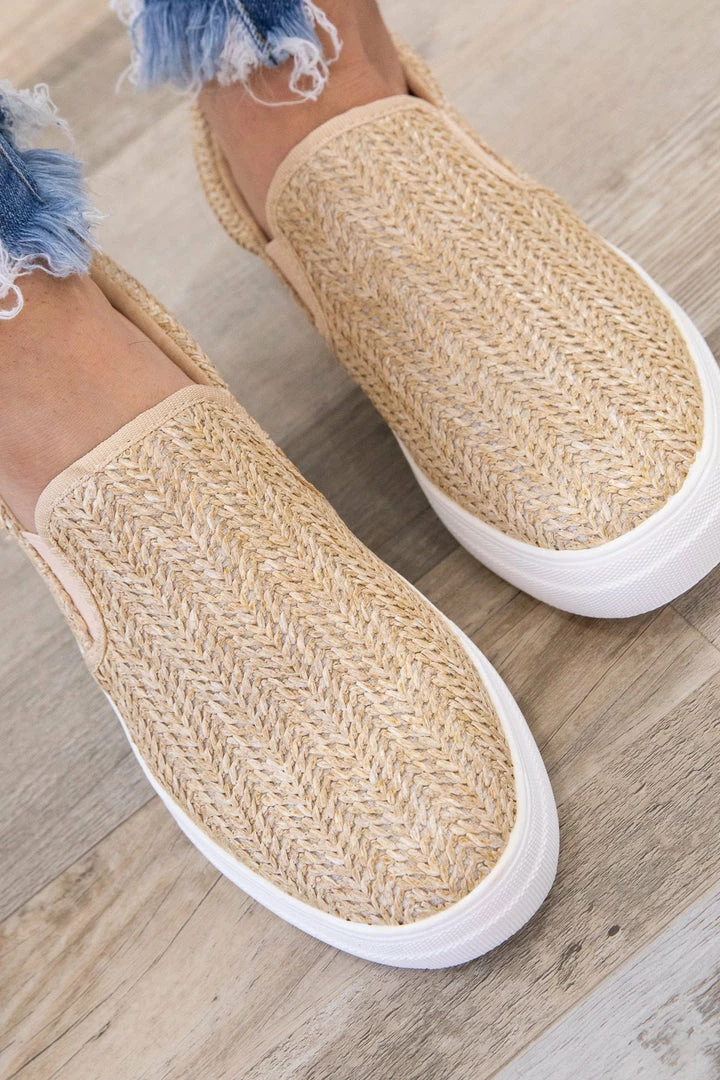 Fortune Dynamic Oatmeal Raffia Platform Slip On Shoes