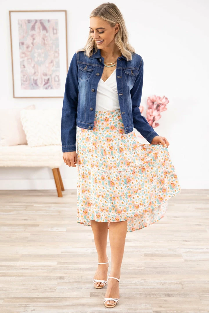 - Colors: Peach, Salmon, Turquoise, Mustard, Cornflower, Red, Tan and Off White