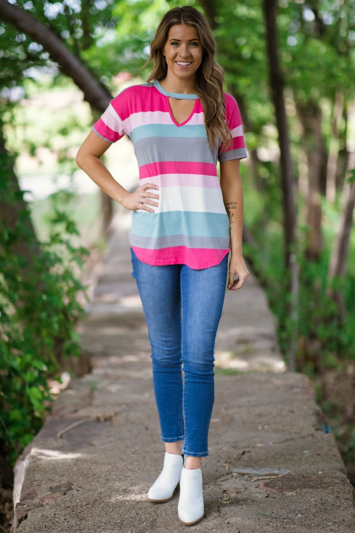 - Colors: Hot Pink, Blush, Grey, Light Aqua