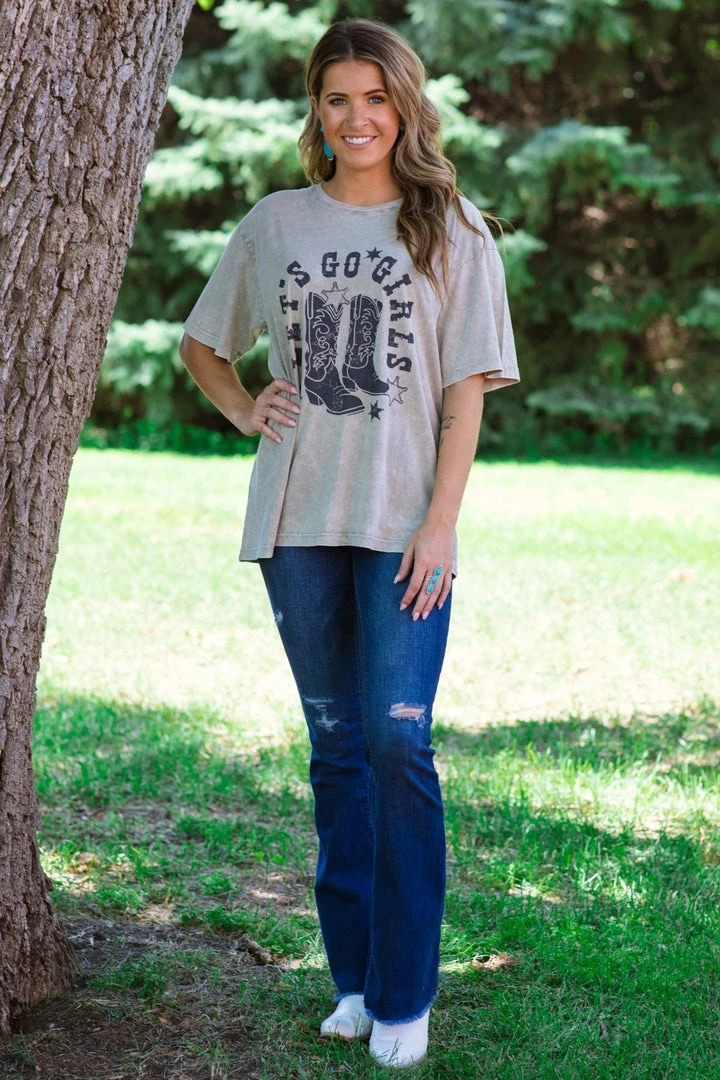 - Print: Mineral Wash with Cowboy Boot Graphic